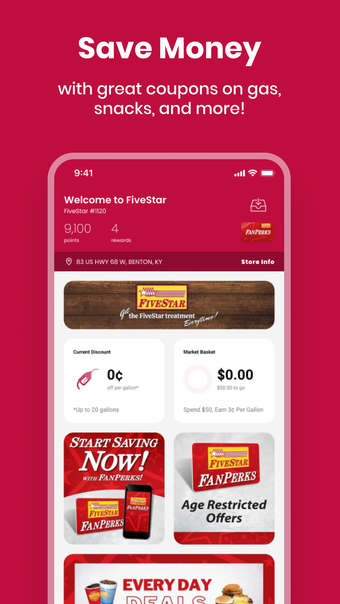 FiveStar FanPerks, iPhone kullanıcıları için tasarlanmış bir yaşam tarzı uygulamasıdır. Bu uygulama, FiveStar mağazalarında gaz, atıştırmalıklar ve daha fazlası için harika indirim kuponları sunarak tasarruf etmenizi sağlar. Kullanıcılar, uygulamadaki turuncu 'kullan' butonuna dokunarak kuponlarını anında kullanabilirler. Uygulama, Rovertown tarafından desteklenmektedir ve kullanıcılar için yakınlardaki mağazaları bulmalarını ve mevcut kuponlar hakkında bildirim alabilmelerini sağlar.